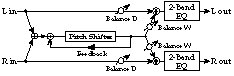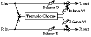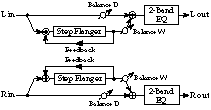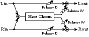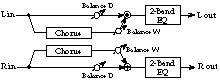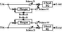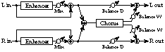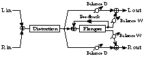 This effect connects a chorus and a flanger in parallel. The parameters are the same as for "37: CHORUS ' FLANGER." However, the Flanger Balance parameter adjusts the volume balance between the direct sound and the flanger sound.