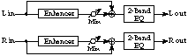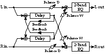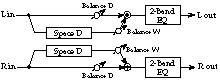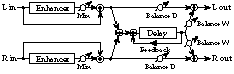 Delay Balance (Delay balance) #Adjust the volume balance between the enhancer sound that is sent through the delay and the enhancer sound that is not sent through the delay. With a setting of "D100:0W", only the enhancer sound will be output. With a setting of "D0:100W", only the enhancer sound that is sent through the delay will be output.