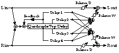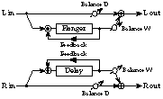 Delay Balance #Adjust the volume balance between the flanger sound that is sent through the delay and the flanger sound that is not sent through the delay. With a setting of "D100:0W", only the flanger sound will be output. With a setting of "D0:100W", only the flanger sound that is sent through the delay will be output.