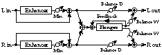 Flanger Balance #Adjust the volume balance between the enhancer sound that is sent through the flanger and the enhancer sound that is not sent through the flanger. With a setting of "D100:0W", only the enhancer sound will be output. With a setting of "D0:100W", only the enhancer sound that is sent through the flanger will be output.