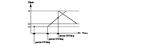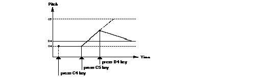 PITCH : Starts a new portamento when another key is pressed while the pitch is changing.