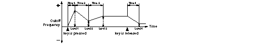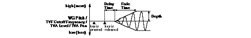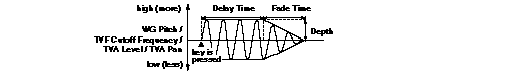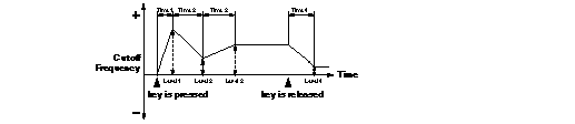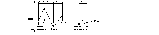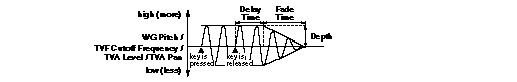 EnvelopeYou use Envelope to initiate changes to occur to a sound over time. There are separate Envelopes for the WG (pitch), TVF (filter) and TVA (volume). For example, to modify a sound's attack and decay time, you would use TVA Envelope to adjust volume changes to the sound over time.